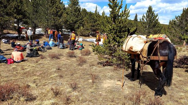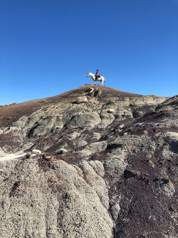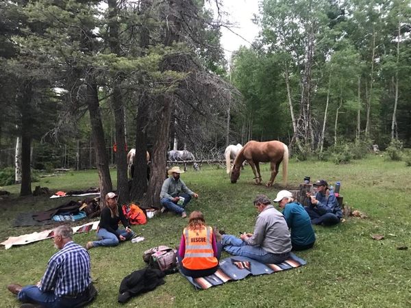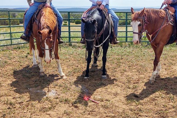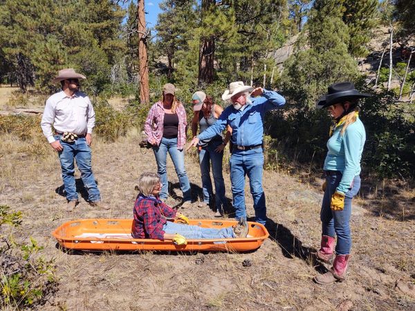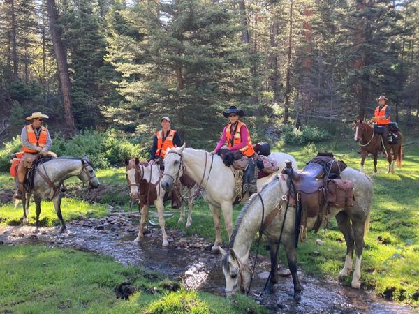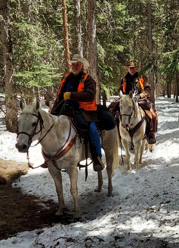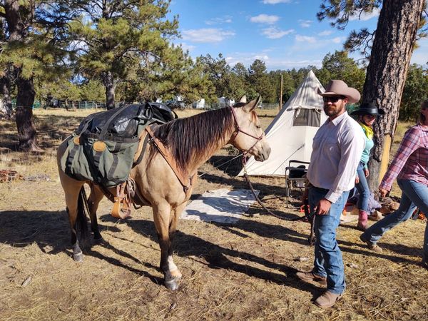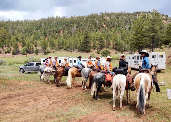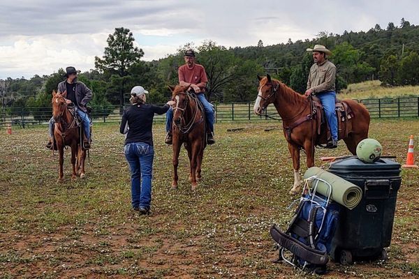 In New Mexico, a mounted searcher may be asked to ride many miles on a search lasting one operational period (up to 12 hours) in an unfamiliar area on flat, or mountainous terrain, at temperatures between 10 - 110 °F, at an altitude between 3,000 and 10,000 feet. This means that a searcher must be prepared for anything! Mounted searchers must also be prepared to hike for several miles in the event of an injured animal, or to stay overnight in the backcountry if necessary.